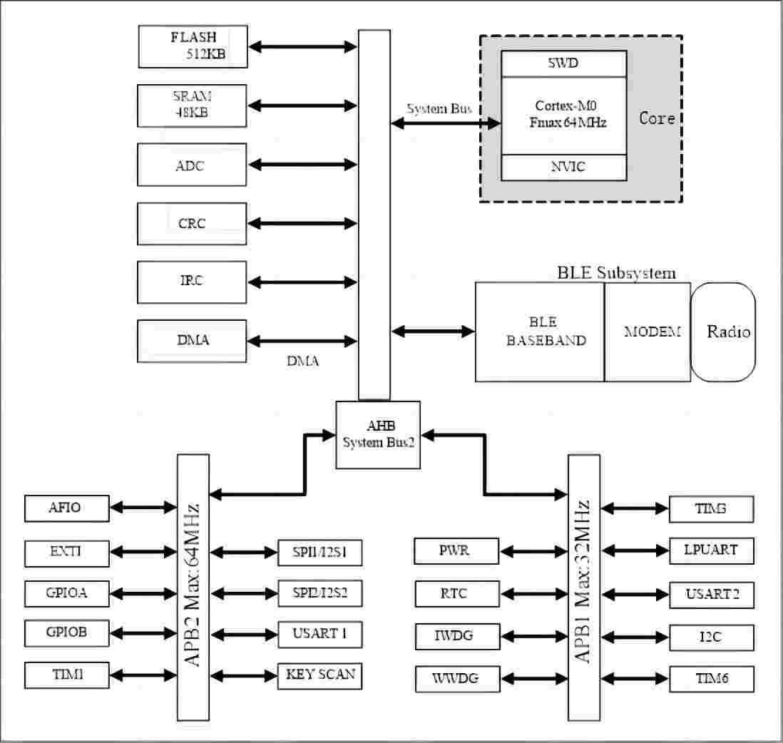 •主頻72MHZ •48KB SRAM,512KB Flash •BLE5.1射頻收發(fā)器 •藍(lán)牙BLE5.1 •1Mbps BLE模式 •2Mbps增強(qiáng)BLE模式 •125kbps BLE遠(yuǎn)程模式 |