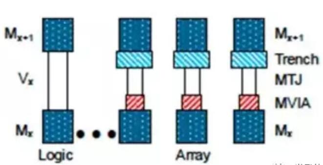 MRAM器件主要由兩個(gè)BEOL金屬層之間的磁性可編程電阻器實(shí)現(xiàn),如下列的圖2所顯示。