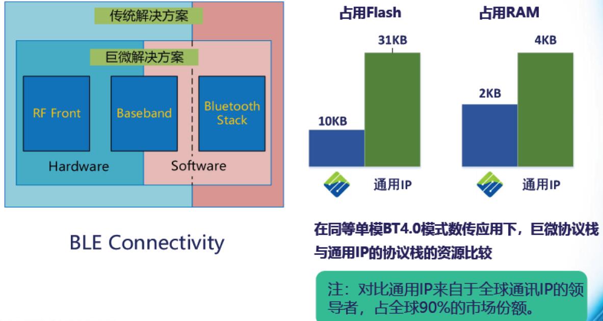 實現BLE 遙控、藍牙鍵盤等數據傳輸應用,需要搭配Cortex-M0 或者M3 的MCU,具體資源需求如下: