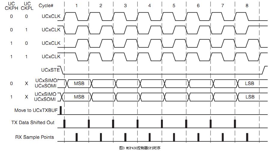 在SPI操作中,最重要的兩項設置就是時鐘極性(CPOL或UCCKPL)和時鐘相位(CPHA或UCCKPH)。時鐘極性設置時鐘空閑時的電平,時鐘相位設置讀取數據和發送數據的時鐘沿。
